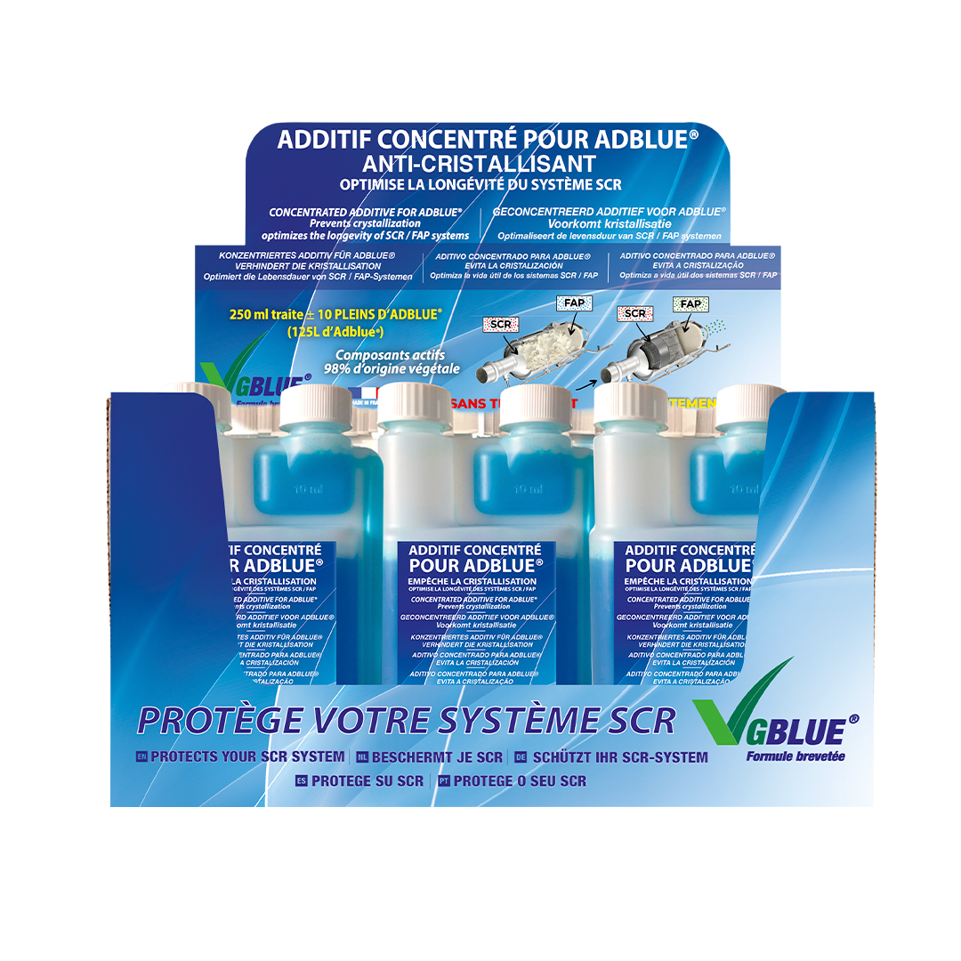 VGBlue® additif concentré pour AdBlue® est utilisé par les véhicules équipés de la technologie SCR (Réduction Catalytique Sélective)